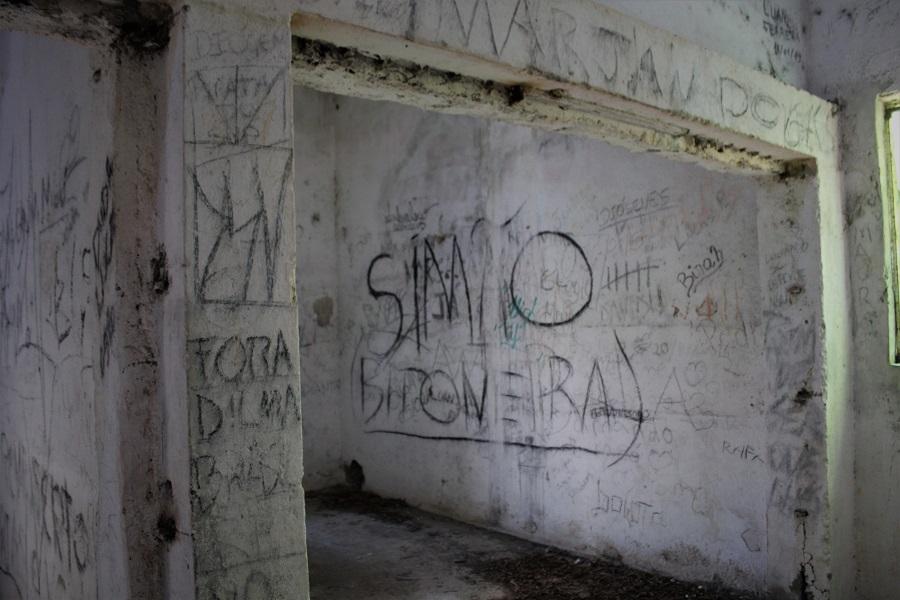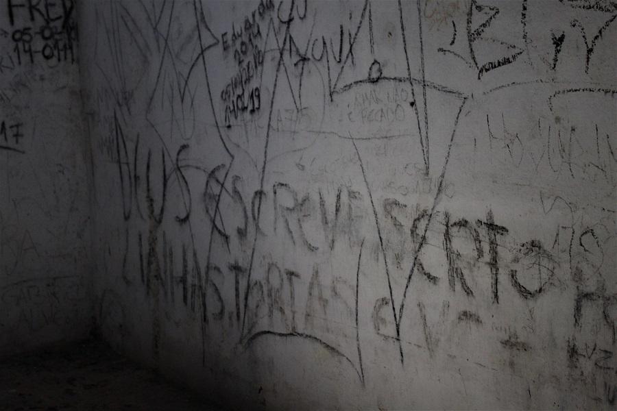Essas pichações podem estar cobrindo as originais, do tempo do presídio, segundo o guia de turismo e biólogo Felipe Schenkel. De acordo com ele, a ideia era frear essas atitudes para que profissionais habilitados pudessem investigar, pare ver se há registros dos detentos que viviam entre essas paredes. "Possivelmente tenha, mas talvez agora estariam encobertas por uma camada de tinta posterior", explica.