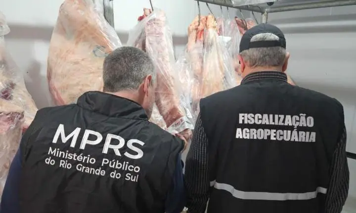 Em operação conjunta realizada na quinta-feira (01º), equipes do Ministério Público do Rio Grande do Sul (MPRS), com apoio da Secretaria Estadual da Agricultura, Pecuária e Desenvolvimento Rural, apreenderam aproximadamente 700 kg de carne em um estabelecimento localizado nos fundos de uma tornearia em Canguçu.