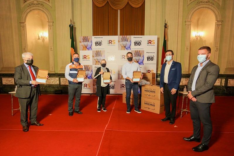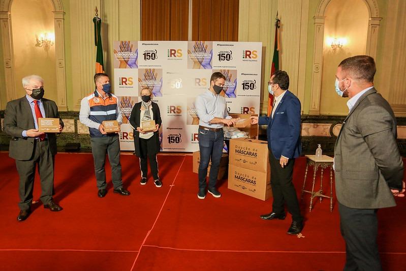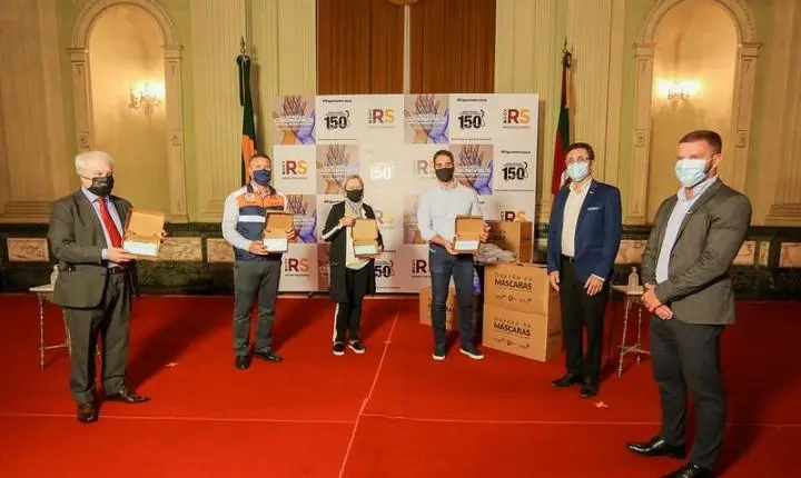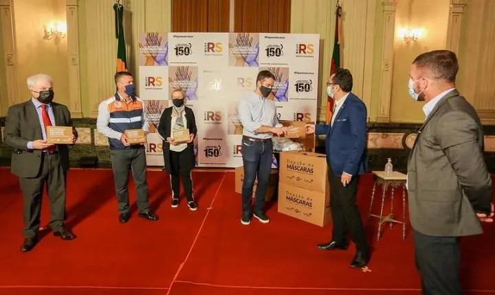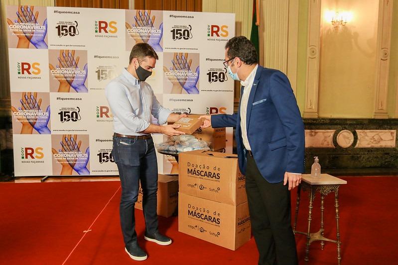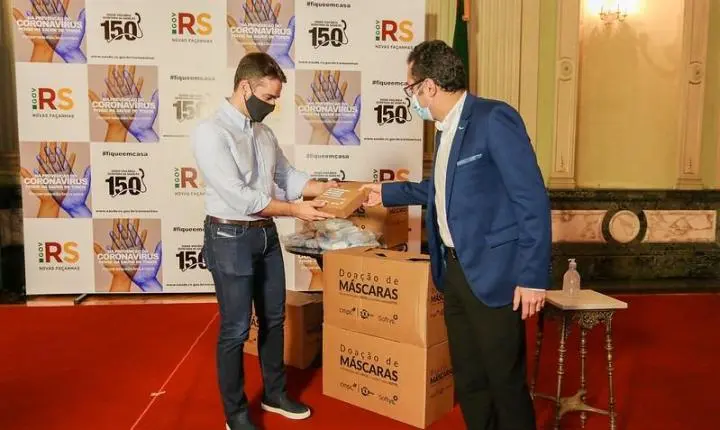 O estado do Rio Grande do Sul receberá uma doação de 900 mil máscaras nos próximos três meses. A CMPC fez, na tarde desta quinta-feira (21/5), uma entrega simbólica de quatro caixas do produto ao governador Eduardo Leite, no Palácio Piratini. Serão 900 mil unidades, sendo 300 mil a cada mês. Um primeiro lote de 100 mil máscaras já foi doado para serviços públicos de saúde nas cidades em que a empresa mantém operações no Estado.