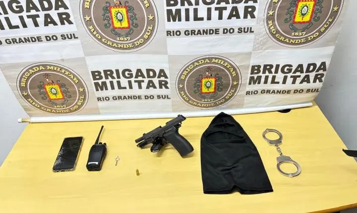 Durante a abordagem, os policiais encontraram com o homem uma pistola 9mm com numeração suprimida, um carregador com uma munição, uma touca e uma algema. Ele também portava um rádio comunicador.