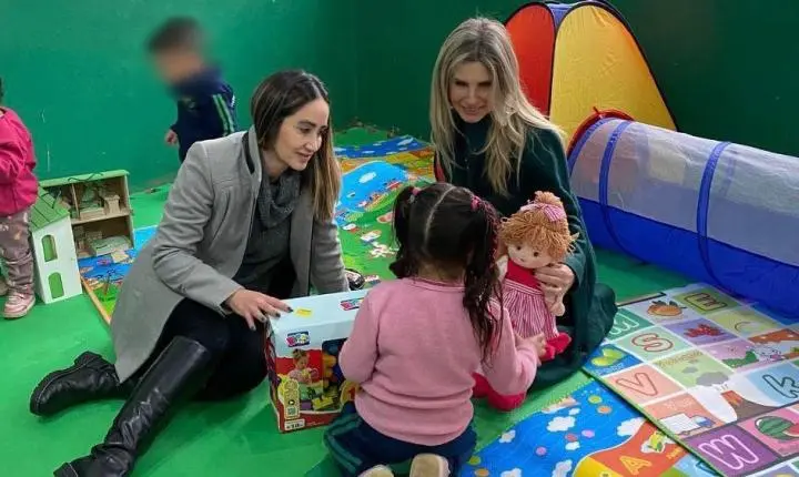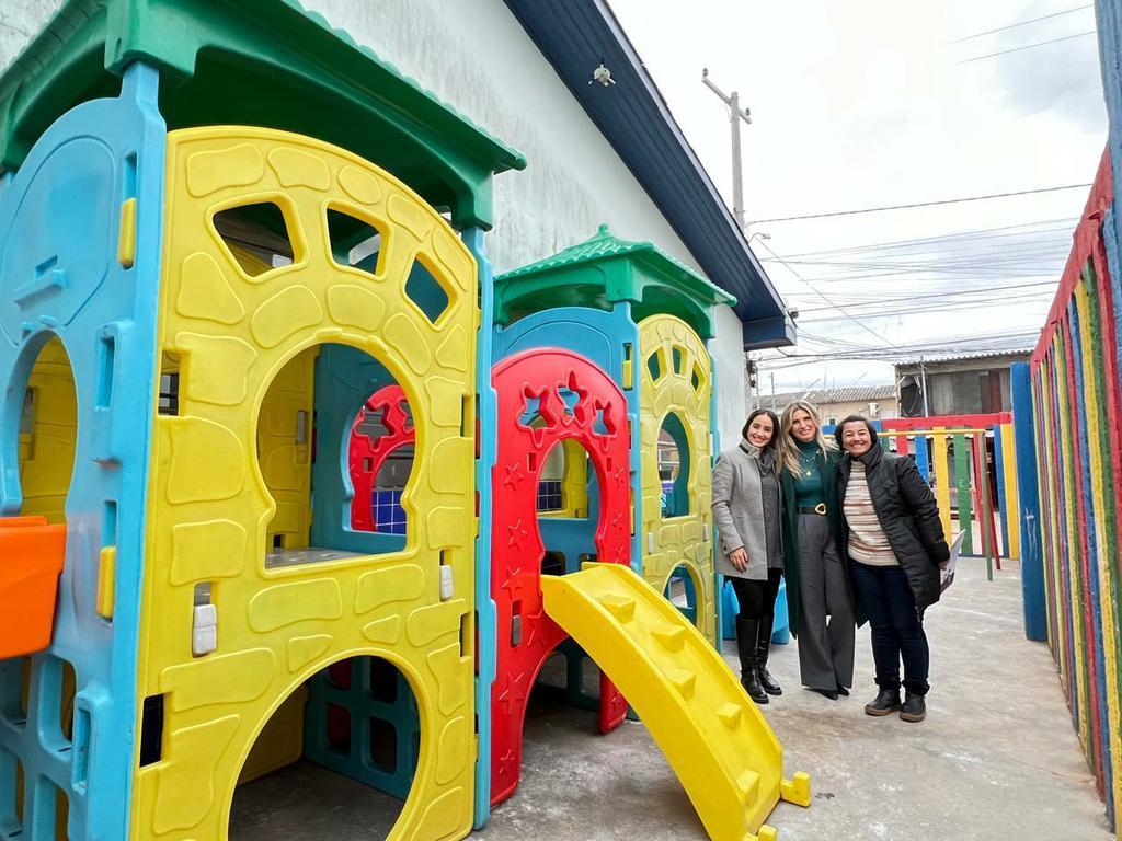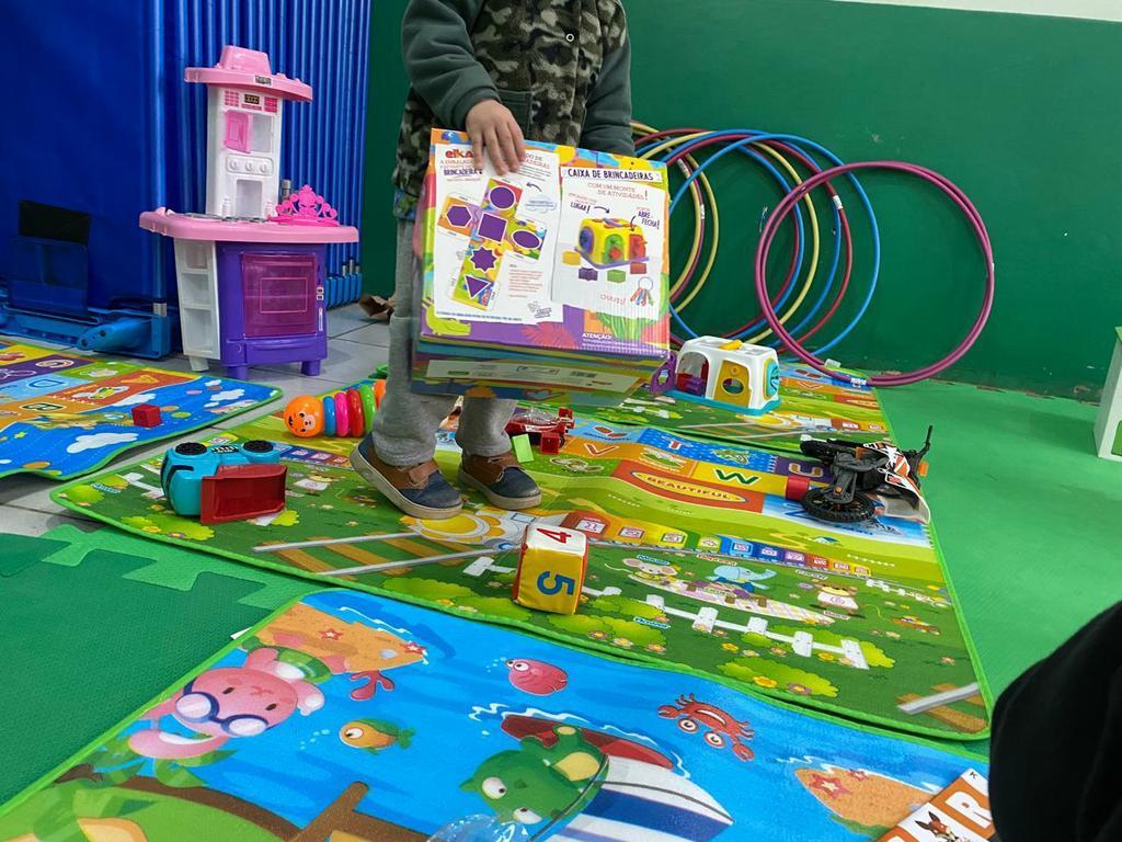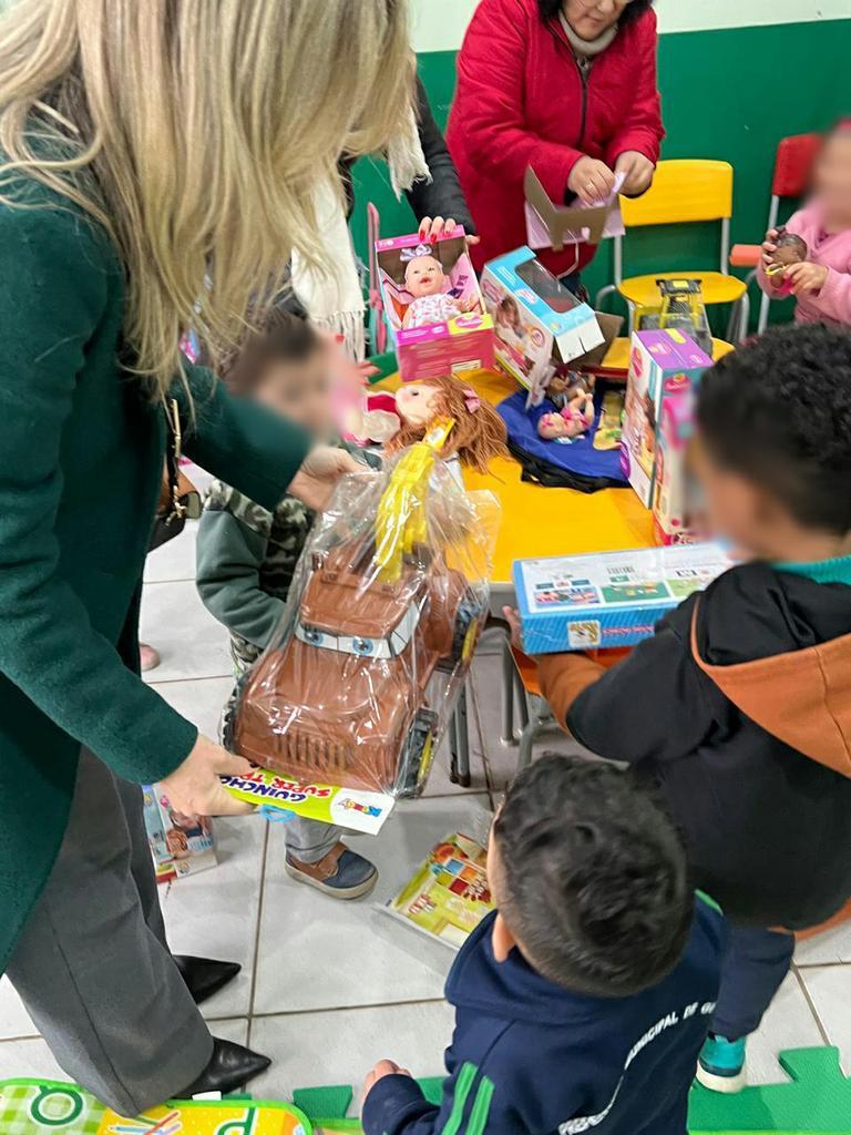 A entrega dos materiais, que incluiu mesas, tatames, tapetes, jogos, bonecas, carrinhos, cortinas para salas de aula e diversos outros itens, foi realizada pela diretora e proprietária da Escola Balão Azul, Morgana Fonseca Luchese Bonatto, e recebida pela diretora da EMEI Maria Dinorah, Maile Lopes da Silva. Um grande brinquedo também foi instalado no pátio da escola, que anteriormente não dispunha de nenhum equipamento desse tipo.