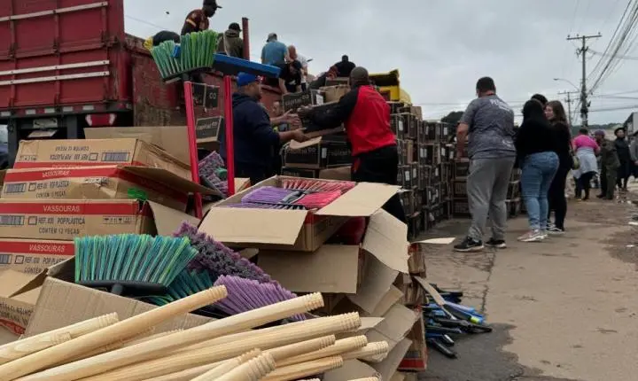 Foram entregues materiais de limpeza pesada, como água sanitária, detergente, rodos, vassouras, esponjas e luvas. No Centro de Acolhimento Humanitário, estão disponíveis produtos de limpeza, kits de higiene pessoal, roupas e alimentos.