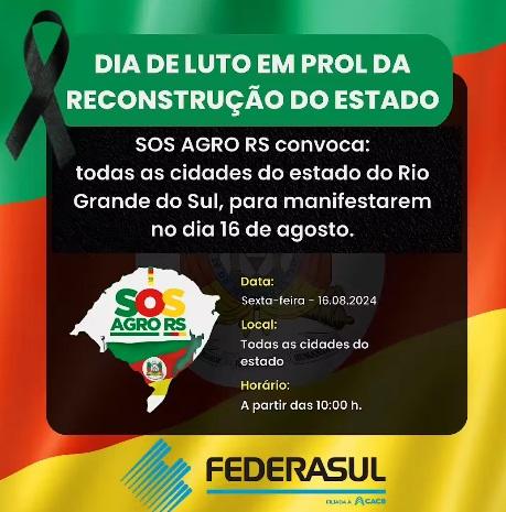 Enquanto aguardam medidas concretas, os produtores foram orientados a levar tratores e outras máquinas agrícolas para as áreas urbanas de suas cidades como forma de protesto. O movimento busca ainda apoio de entidades como Fecomércio, Fiergs e Federasul para a realização do "dia de luto".