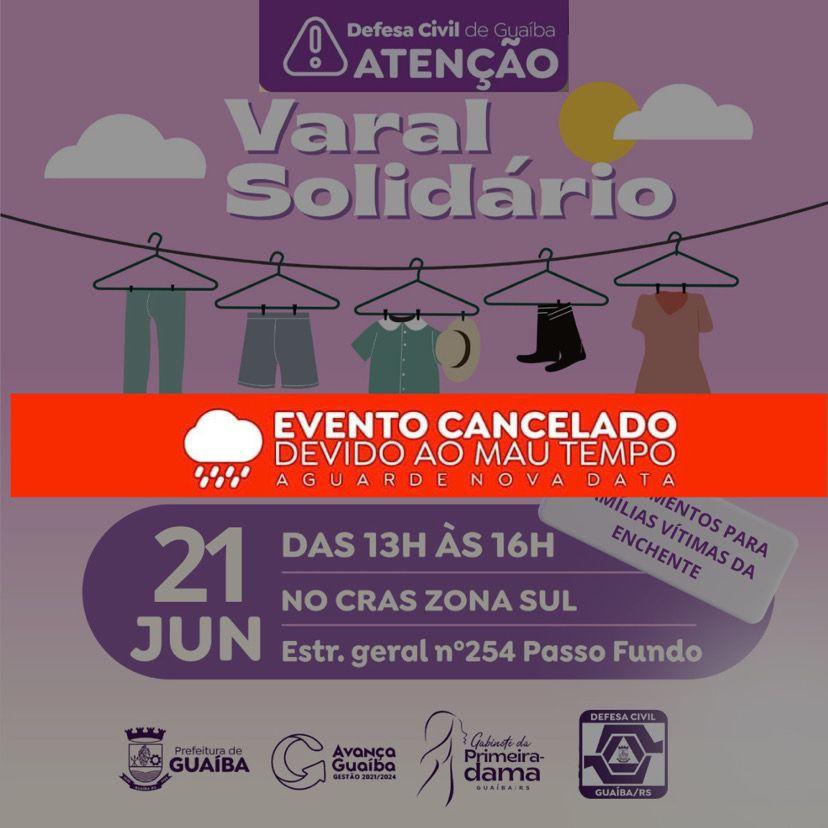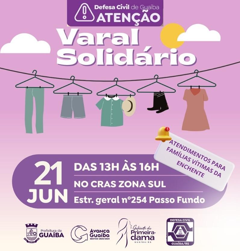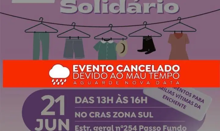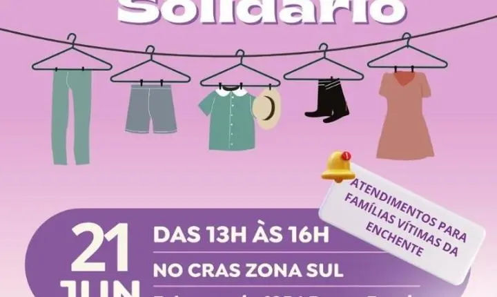 O evento, denominado Varal Solidário, agora deve ocorrer na próxima sexta-feira (28) no CRAS da Zona Sul, localizado na Estrada Geral nº 254, no bairro Passo Fundo, das 13h às 16h. A edição especial estava marcada para a sexta-feira, dia 21 de junho, entretanto, devido às condições climáticas, o evento teve que ser transferido.